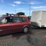 We’re halfway to the campsite, have stopped for groceries. It’s 32 degrees and the kids are melting. No AC in the car. Ferry crossing was pretty calm, upgrade to club class was amazingly worth it — didn’t have to buy dinner or breakfast because of the free snacks and coffee!! Trailer is pulling fine and everything has stayed in place. All going well so far!!