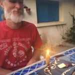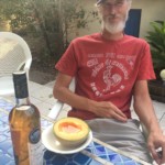 Tuesday was Eric’s birthday, so he went for a 60 mile ride alone and explored the region north of the river, stumbling on several chateaux along the way. We celebrated with Melon au Pineau (a specialty from the nearby Charente region which my family remembers from a visit when I was a teen!) and a lovely chocolate mousse cake.
