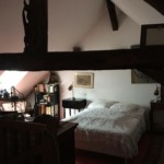 Our Airbnb in Les Bordes was an old village house, filled with hundreds of books (all in French, of course), and art, sculptures and textiles from all around the world. It was colourful and cluttered, cosy and comfortable, with a farmhouse kitchen and a huge garden with grapevines and fruit trees. The master bedroom, upstairs under the eaves, had a beam across the middle of the room at chest height, which was low enough that there was no risk to our heads, but we did have to duck under it to get to the bed. We had a cat who visited us most days and requested food, which our host had in the kitchen despite it not being his cat. We were quite happy to feed him though.