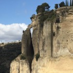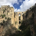We walked past the bullring and to the edge of town, on a cliff, where the views down wouldn’t be fun if you’re afraid of heights! It was easy enough to follow along the cliff edges (there are good barriers) to the bridge, where we could really see the scale of the gorge. We could see paths going down the side of the gorge so decided to follow them. We went down…. and down…. and down… til we were about level with the bottom of the bridge, but the ground was still a long way down. There were still cliffs (and no barriers) so it was feeling a little dicey, but really incredible to see the gorge and the bridge from that angle. And then we had to climb back up. About 80 metres up, in about half a kilometre. A pretty good workout!