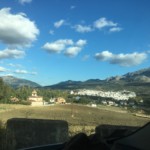 We decided to head for Ronda, another mountain town, famous for being the birthplace of bullfighting and for the 100m gorge running through the town, the two halves of which are connected by a few bridges. Again, the drive was spectacular, windy (but good!) mountain roads, hills and switchbacks, views that took our breath away. On the way we drove past El Burgo, another typical whitewashed village. We pulled over at a viewpoint shortly after that and took a short walk to admire the scenery. It was cold! Well, to us, it was cold: only 7ºC and I was wearing a skirt and sandals.