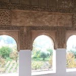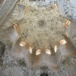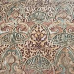 The Alhambra is one of the more famous pieces of architecture in Spain. It dates back to 889 AD, although the complex has been added to and changed in many ways over the years. It was originally a small fortress, but fell out of use until the 14th century, when an emir of the Nasrid dynasty rebuilt it and added a large palace complex around it. The palace is the place that shows the most of the architecture and carving, although other parts of the complex display similar designs. Most of the artwork in the palace is just designs or Arabic calligraphy, but there are 3 paintings that show people in the top of alcoves.