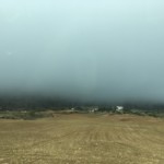Antequera was an important town in Roman times, but its history goes back much further. On Sunday we visited the Bronze Age burial mounds, which bear a fairly strong resemblance to Newgrange and the passage tombs in Ireland. We thought we’d see a bit more of the area, and intended to stop for a hike at El Torcal, but it was raining and visibility in the park was awful, so we admired the not-view (I believe there were supposed to be mountains to see?) and just came home. Looking back up once we got below the cloud, it was clear why we saw nothing! The views did get better as we got nearer home.